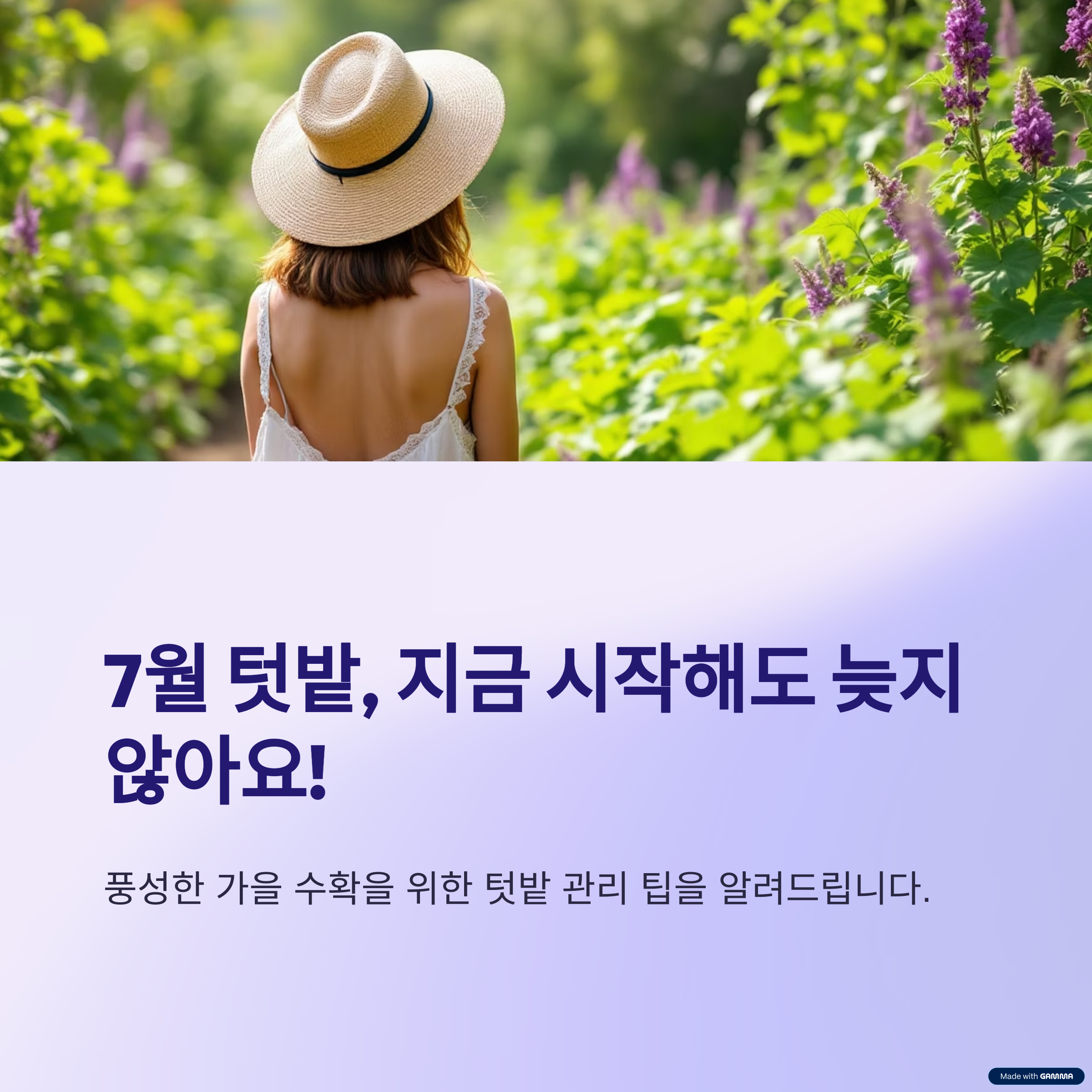 "7월 중순인데, 이제 텃밭 농사는 끝난 거 아니야?"혹시 이런 생각으로 텃밭을 방치하고 계셨나요?솔직히 저도 처음엔 장마와 무더위 때문에여름 텃밭은 포기했었거든요.봄에 심었던 작물들 수확하고 나면왠지 텃밭이 허전하고 뭘 심어야 할지 막막하잖아요, 맞죠?근데 알고 보니 7월 중순은가을 수확을 위한 아주 중요한 시기더라고요!이거 하나만 알면 지금부터 가을까지싱싱한 채소를 끊임없이 수확할 수 있답니다.오늘 제가 알려드릴 7월 중순 텃밭 농사 꿀팁만 따라오세요!초보 농부도 쉽게 성공할 수 있어요. 7월 중순, 지금 심어도 늦지 않는 효자 작물 BEST 4!"지금 심으면 언제 자라?"라고 생각하시겠지만,7월 중순에 심어도 가을에 풍성하게 수확할 수 있는착한 작물들이 많답니다.특히 장마가 끝나갈 무렵 심으면촉촉..